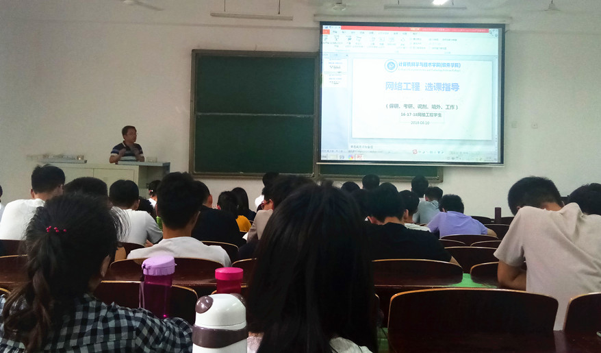 6月10日,网络工程专业学生选课指导会在我院101教室顺利召开,网络工程系主任汤永利为2017级、2018级专业学生做选课指导,网络工程系其余教师到场参会。