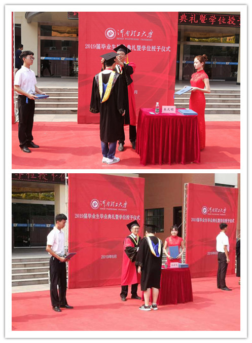 626日上午,我院在学院楼前隆重举行2019年毕业典礼暨学位授予仪式,学院党委书记朱天明、院长孙君顶、党委副书记邵水军、副院长赵珊、于金霞,朱世松教授和全体毕业班辅导员出席典礼,共同祝贺我院2019届毕业生顺利毕业。