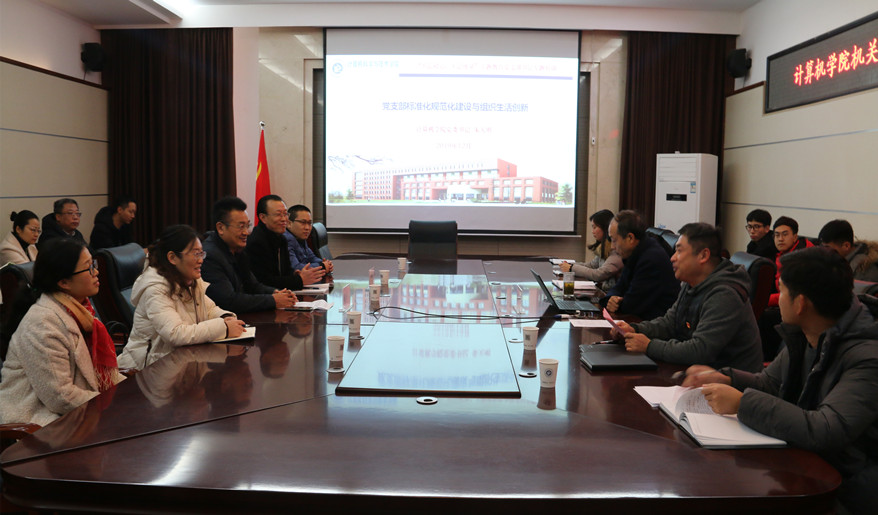 会上,朱天明和谢向东分别介绍了各自单位的情况,并在支部建设、活动组织、特色活动等方面进行了经验交流,表达了相互学习、产学结合、共同提高的愿望。随后,针对内二支部的需求,朱天明以“党支部标准化规范化建设与组织生活创新”为题,为在场党员作了专题培训。他从“两化一创”的实施背景、高校党支部的地位和作用、党支部“两化一创”及方法措施和党支部组织生活及方法创新四个方面对创建思路和经验作了讲解。