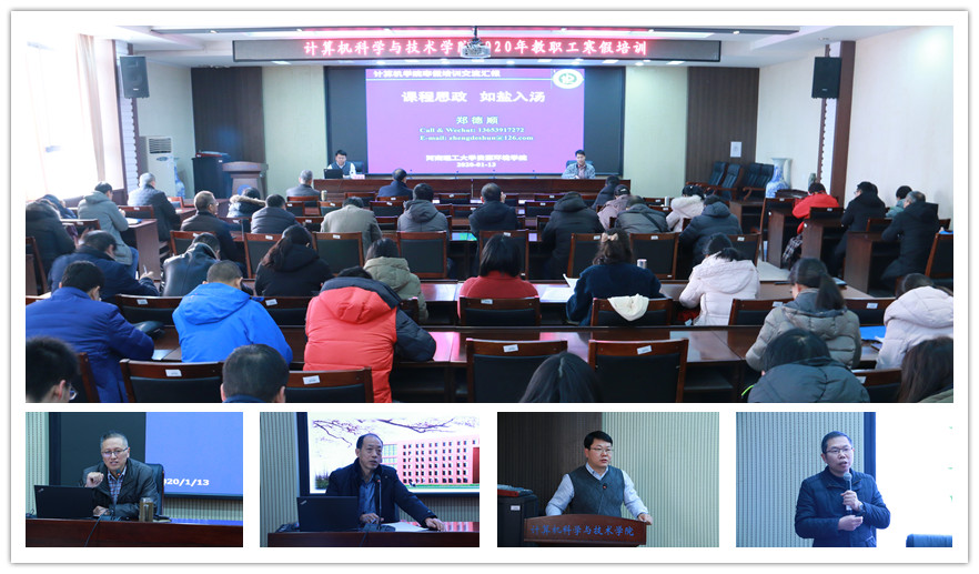 13日上午,学院院长孙君顶作了题为《2019年度总结暨学院发展思考》的报告,他从学院师资队伍,教学工作,学科、学位点与平台,研究生工作四个方面深入剖析了学院现阶段发展过程中存在主要问题以及差距,并向与会教师详细阐述了解决问题的思路以及学院今后的发展方向与方案计划;院党委书记朱天明作题为《坚守初心使命,树立优良师德》,他从新时代树立优良师德的重大意义和新时代树立优良师德的方法途径两个方面与参会老师分享了新时代树立优良师德的认识和体会,他强调,广大教师要深入学习,明确要求;对照标准,强化修养;明确底线,守正扬清积极教学育人,争做“四有”好老师。下午,特邀资环学院教授、博士生导师郑德顺作题为《课程思政,如盐入汤》的报告,他从课程思政与思政课程关系、挖掘融合专业思政元素、润物无声设计教学方法、教师立德树人教学育人等4个方面展开,从思政课程存在的问题到教学内容,再到课程思政的教学方法,结合《地质学》课程挖掘专业课里的家国情怀,相得益彰,引人入胜。14日上午,特邀河南省教学名师土木学院王钦亭老师作题为《在线开放课程的建设及应用实践》的报告,他从我国在线开放课程的发展过程,MOOC建设过程,MOOC应用实践,MOOC的运行体会及展望四个方面为老师们详细讲解了在线课程项目的建设方法与实践应用。下午,教师们共同学习时代楷模卢永根、朱有勇院士先进事迹,为广大教师树立了榜样。