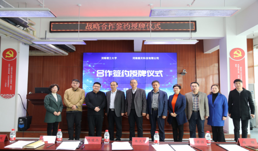 10月22日上午,我院与河南垂天科技有限公司联合培养研究生战略合作签约暨建立研究生教育创新实践基地授牌仪式在河南垂天科技有限公司会议室举行。研究生院副院长陈俊杰,我院党委书记朱天明,院长孙君顶,副院长赵珊,河南垂天科技有限公司总经理朱明甫,副总经理张菊萍等双方代表参加签约暨授牌仪式。