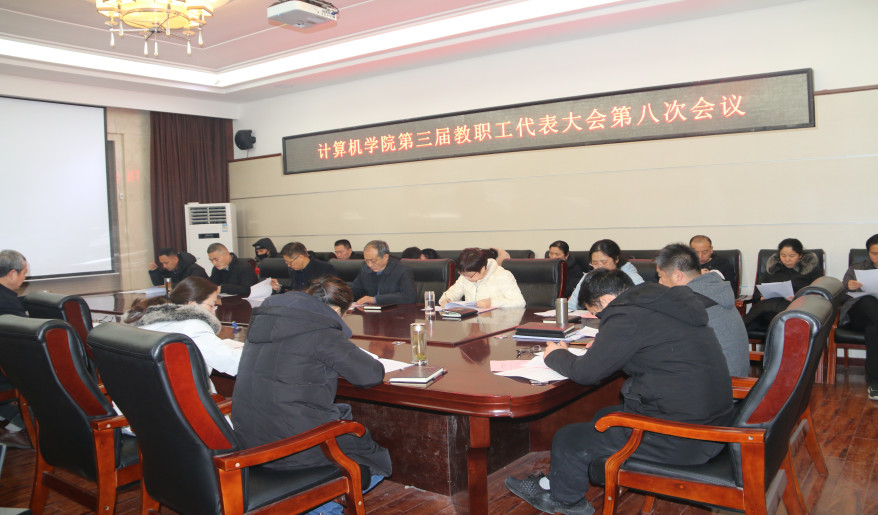 近日,我院在217会议室召开第三届教职工代表大会第八次会议,学院党委书记朱天明、院长孙君顶、党委副书记邵水军、副院长赵珊、于金霞等32名学院教代会代表参加会议。会议由党政办主任候三中主持。