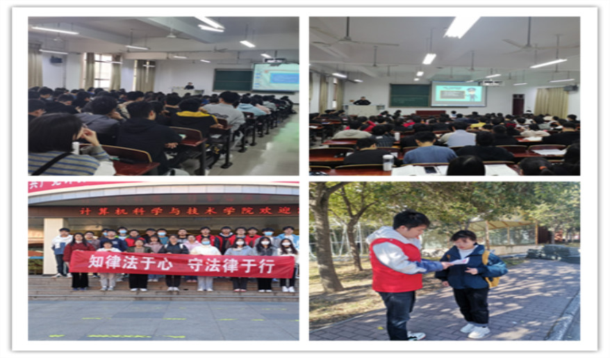 公安局派出法治辅导员深入学生课堂,从校园安全实际出发,围绕防诈骗、防校园暴力、交通安全等方面,将防范知识与典型案例相结合,详细介绍了校园安全防范知识及预防犯罪的对策和依法维护自身合法权益的有效途径,教育引导学生养成遇事找法、处理问题靠法的思维习惯和行为模式。同时,我院在校园组织开展了法治宣传志愿活动,在餐厅、院楼、宿舍楼等地发放宣传资料100余份,并举行守法签名仪式、发放法治宣传材料、宣讲法律知识,向学校师生宣传宪法精神、法律知识。