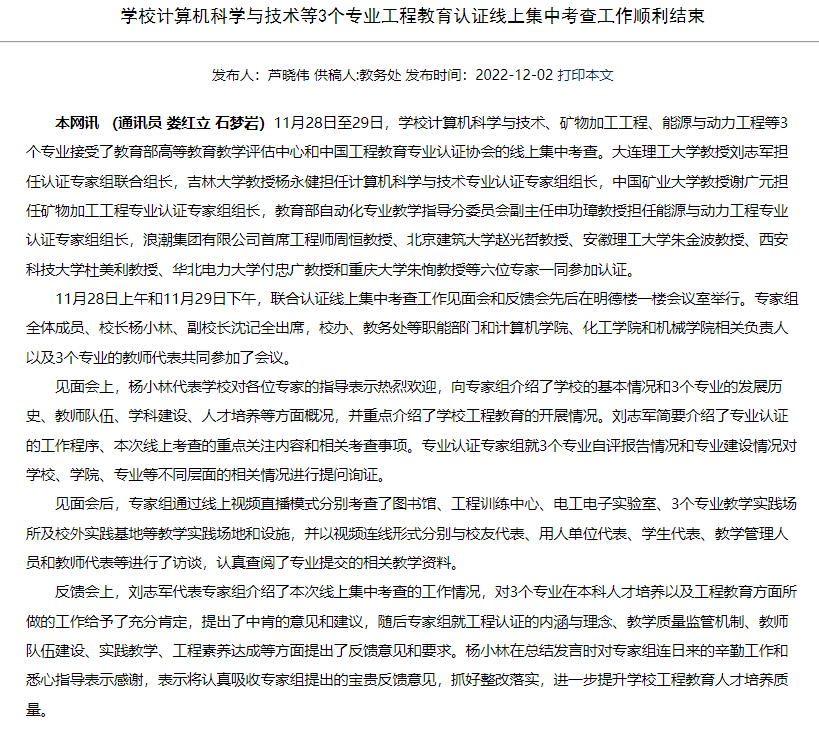 学校计算机科学与技术等3个专业工程教育认证线上集中考查工作顺利结束