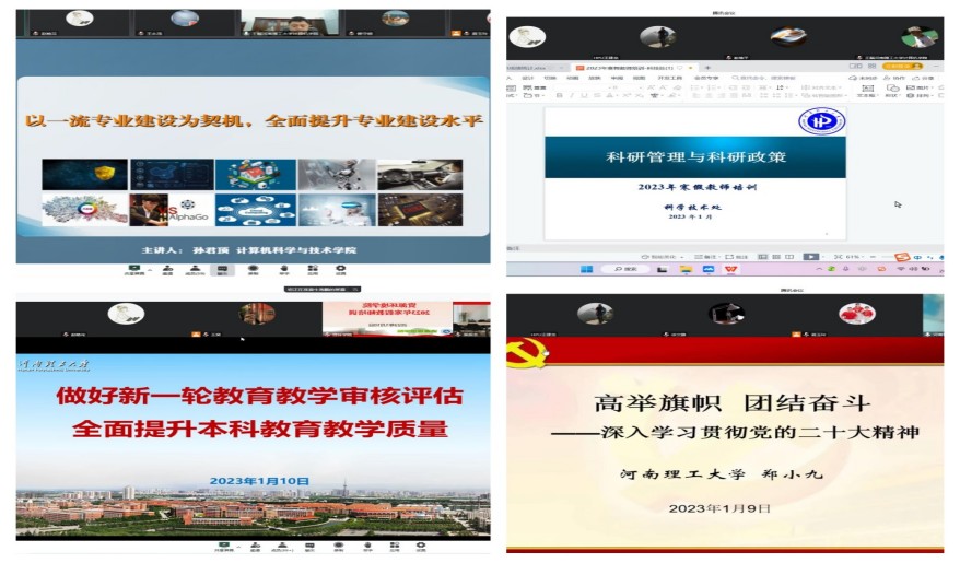 2023年1月9日到10日,我院通过腾讯会议线上举行了为期两天共计4个单元的寒假教师培训,副院长王磊主持,全体教职工参加培训。