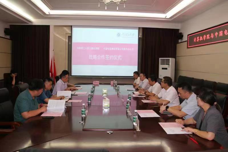 为推动教育数字转型、智能升级、融合创新,支撑教育高质量发展,7月10日上午,新葡的京集团350vip8888与中国电信集团有限公司焦作分公司战略合作框架协议签约仪式在学院217会议室举行。新葡的京集团350vip8888新葡的京集团350vip8888院长孙君顶及部分班子成员,中国电信集团有限公司焦作分公司党委书记、总经理于云昊及班子成员,以及计算机系、物联网系部分教师出席签约仪式。