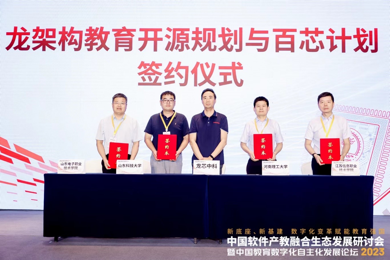 为进一步推进产教融合、科教融合,提高我校计算机类专业人才培养质量,新葡的京集团350vip8888近期参加了由工业和信息化部教育与考试中心等单位指导,龙芯中科技术股份有限公司承办的“2023中国软件产教融合生态发展研讨会暨中国教育数字化自主化发展论坛”,并签约龙架构教育开源规划与百芯计划。
