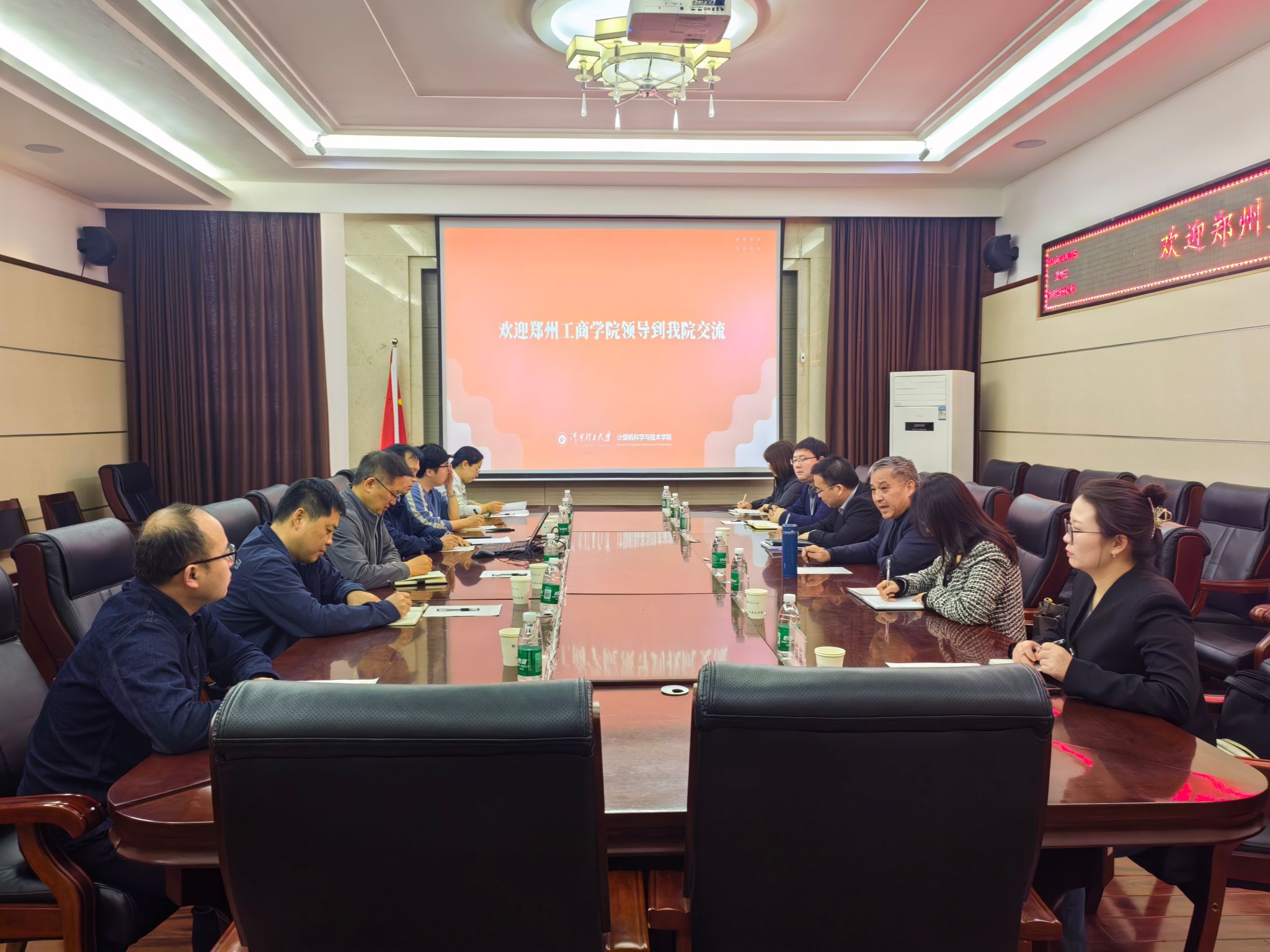 2024年4月10日上午,郑州工商学院教务处处长秦方奇、副处长郝艳、信息工程学院院长汪金龙等一行六人到我院进行课程建设交流,院长孙君顶、副院长王磊、计算机系部分教师出席,副院长王磊主持会议。