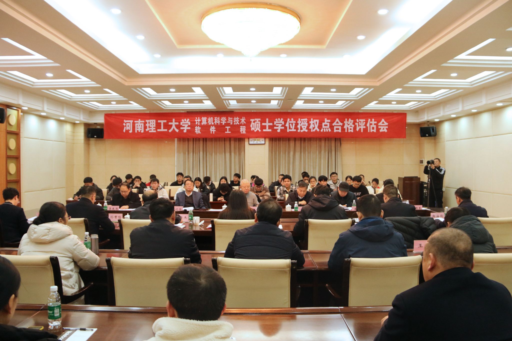 12月13日下午,我校在力行楼一楼会议室召开计算机科学与技术、软件工程硕士学位授权点周期性合格评估会议。评估专家组组长、北京航空航天大学人工智能研究院常务副院长李波教授,专家组成员东南大学研究生院常务副院长、党委研究生工作部部长耿新教授,郑州工程技术学院党委书记甘勇教授,安阳工学院党委副书记、校长沈记全教授,郑州航空工业管理学院党委副书记李捷教授,河南科技大学副校长吴庆涛教授,河南大学乔保军教授出席评估会,我校副校长丁亚红出席会议并讲话。研究生院、新葡的京集团350vip8888、软件学院负责人、计算机科学与技术及软件工程专业部分硕士生导师、学生代表参加会议。会议分两个阶段进行,分别由研究生院院长陈俊杰、专家组组长李波主持。