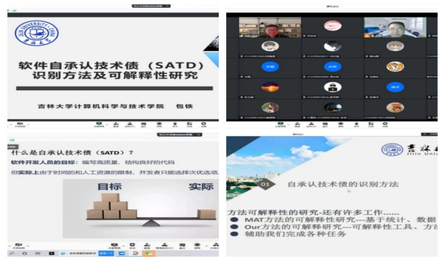 128日上午,吉林大学教授包铁应邀参加我院第三届研究生学术文化节,为我院、软件学院师生线上作题为《软件自承认技术债(SATD)识别方法及可解释性研究》的学术报告,软件学院王辉教授主持报告会,部分教师和研究生参加了报告会。