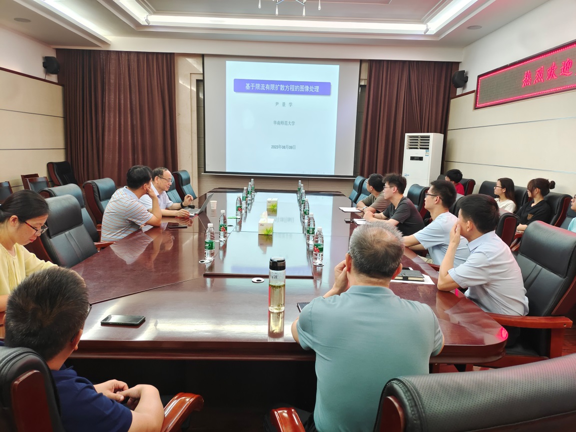 8月9日上午,华南师范大学尹景学教授莅院,在学院217会议室作了题为《基于限流有限扩散方程的图像处理》的学术报告,芦碧波教授主持报告会,部分教师和相关专业研究生参加了报告会。