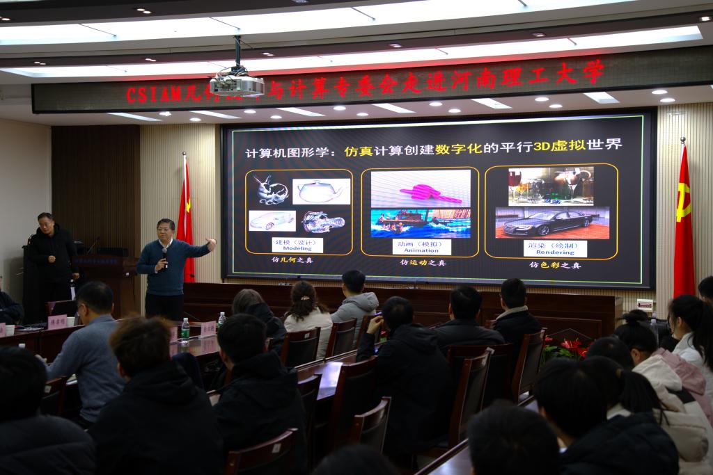 活动开始,新葡的京集团350vip8888院长孙君顶致欢迎辞,并介绍了学院的发展历史、专业建设、人才培养、科研情况等。国家杰青、专委会主任、中国科学技术大学刘利刚教授对CSIAM几何设计与计算专委会进行了介绍,并做了“CAD/CAE/CAM一体化简介”的报告。