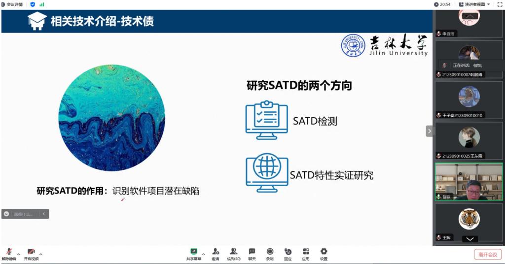 12月8日下午,吉林大学教授包铁应邀参加新葡的京集团350vip8888第四届研究生学术文化节,为该院和软件学院师生线上作题为《区块链软件系统中技术债问题研究》的学术报告,软件学院王辉教授主持报告会,部分教师和研究生参加了报告会。