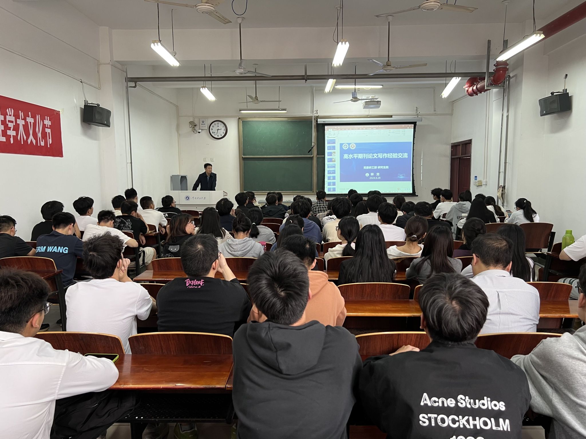 于金霞向研究生介绍了学校建校115周年的历史背景,并宣布第五届研究生学术文化节正式开幕。林龙作“科技论文撰写及研究生竞赛交流”的主题报告,为研究生新生讲解了科学研究的思路,展示了历年我校研究生获得的竞赛荣誉,从而鼓励学生积极参赛、提升自我。2023级研究生王子豪、张蓓蕾根据参加研究生人工智能创新大赛的获奖经历,从时间规划、创意筹备、现场答辩等方面分享了个人心得。导师王建芳、苏柏顺分别介绍了“挑战杯”等八项高水平学科竞赛,分析了各项赛事的规则与共同点。