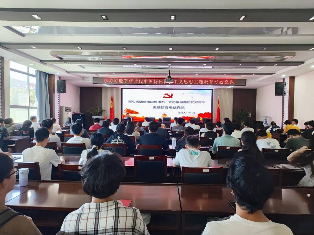 许辉以《凝心铸魂感悟思想伟力,立志争做新时代好青年》为题,深刻阐述了学习贯彻习近平新时代中国特色社会主义思想的重大意义,讲解了习近平新时代中国特色社会主义思想的主要内容以及主题教育的学习目标、学习要求和根本任务,最后从“救国”、“兴国”、“富国”、“强国”四个方面,回顾了中国共产党奋斗史。他强调,习近平新时代中国特色社会主义思想,是当代中国化马克思主义、二十一世纪马克思主义,是中华优秀文化和中国精神的时代精华,实现了马克思主义中国化时代化新的飞跃。学习习近平新时代中国特色社会主义思想,要联系党的百年辉煌史、联系党的思想发展史来学习,深刻领悟“两个确立”,坚决做到“两个维护”,增强“四个意识”,坚定“四个自信”。希望老师们,牢记立德树人根本任务,为党育人,为国育才使命;希望同学们,增强做中国人的志气、骨气、底气,不负时代,不负韶华!