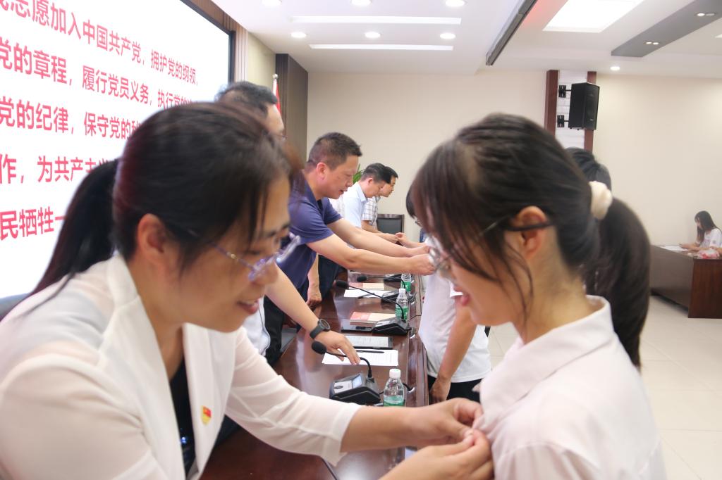 仪式在雄壮的《国际歌》中拉开帷幕,该院院长孙君顶宣读《中共新葡的京集团350vip8888委员会关于表彰2022年度优秀党务工作者、优秀共产党员的决定》,向受表彰的同志表示祝贺。随后,现场全体党员面向党旗,庄严宣誓。该院党委委员为新发展党员代表佩戴党员徽章并发放政治理论学习书籍《顶天立地讲信仰》。新发展党员包子旭代表全体预备党员对组织的培养表示了感谢,并表达了为党的事业努力奋斗的决心。