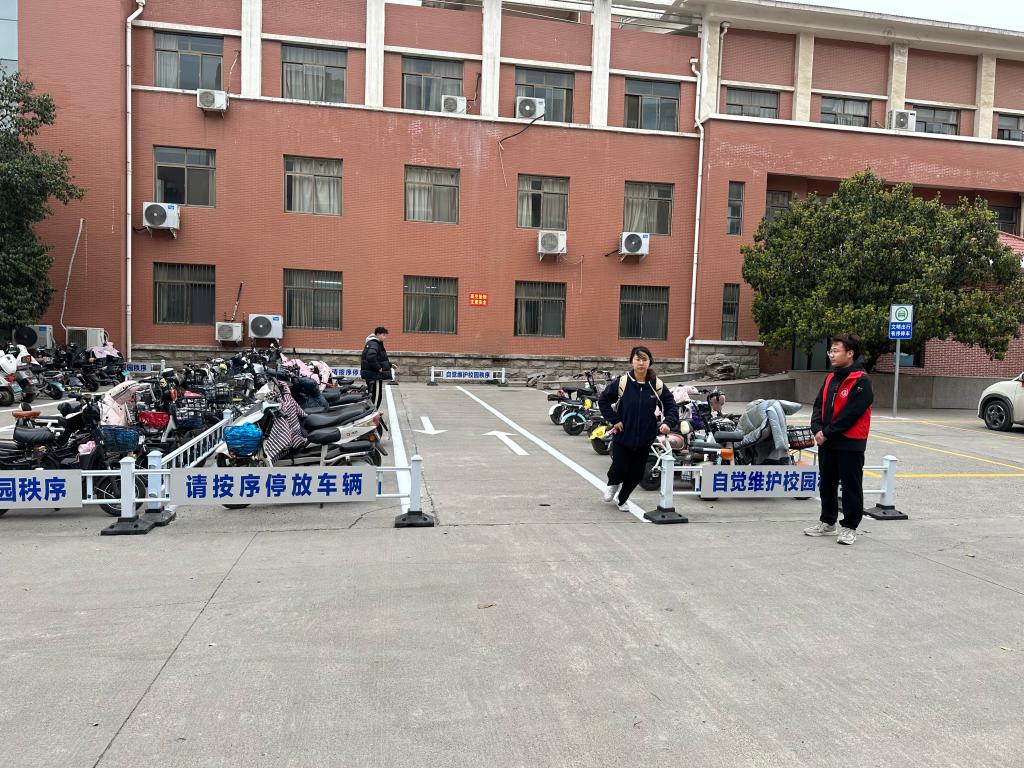 学院对楼前停放车辆的位置重新进行了规划和设计,根据设计方案进行了规范停车设施建设,并在醒目的地方安装了规范停车标示。规范停车设施建设期间,学院向全院师生发送了倡议书,号召全院师生文明有序停车,以实际行动为学校创建“全国文明校园”贡献自己的力量。规范停车设施建设完成后,学院安排党员志愿者在学生上下学高峰期执勤引导,普及“全国文明校园”评选知识,养成文明停车习惯,共同维护文明、有序、整洁、安全、美丽舒适的校园环境。