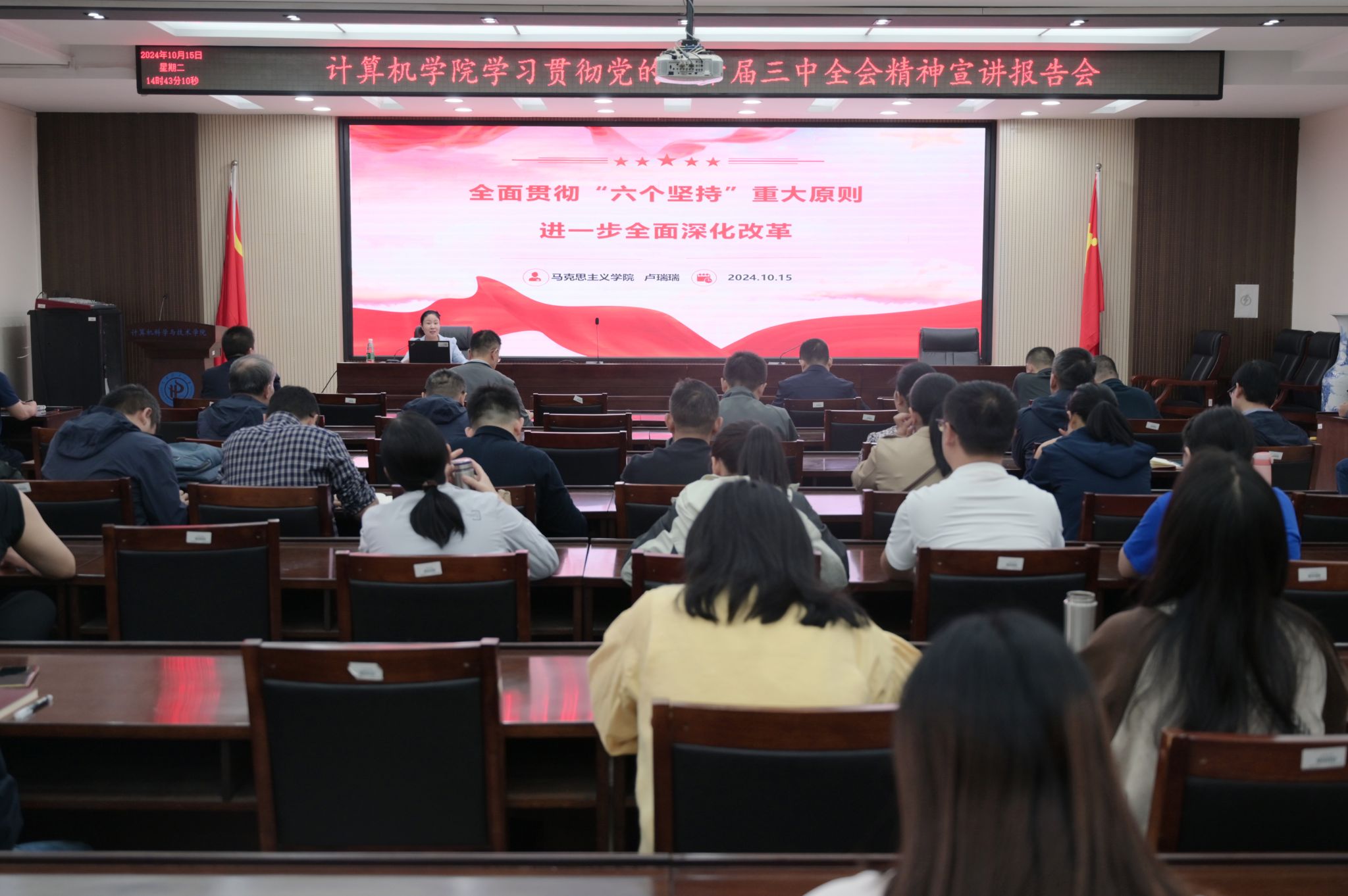 为深入学习贯彻习近平新时代中国特色社会主义思想和党的二十届三中全会精神,认真贯彻落实学校部署安排,10月15日下午,新葡的京集团350vip8888在学院201报告厅举办学习贯彻党的二十届三中全会精神专题宣讲报告会,邀请马克思主义学院卢瑞瑞老师作专题辅导报告,我院全体教职工参加此次学习,学院党委副书记阎俊豪主持会议。