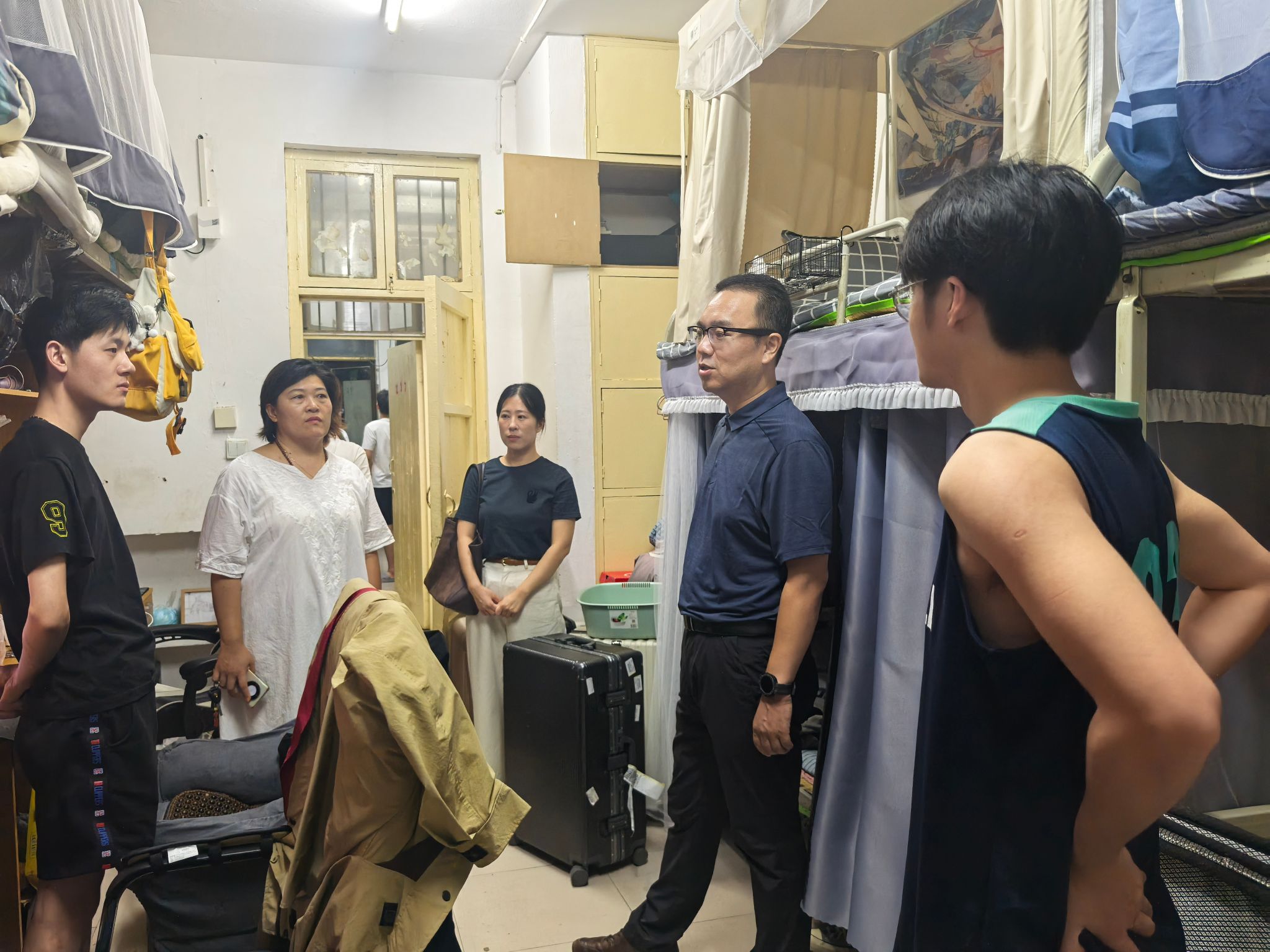 走访过程中,老师们详细了解了学生开学返校情况,对学生宿舍的安全设施、卫生状况、住宿条件等方面进行了全面检查,并与学生们亲切交谈,询问了学生们的假期生活、学习规划,倾听学生心声,了解学生诉求,提醒学生们要尽快调整自身状态,调整作息,以适应新学期的学习和生活。针对大四考研学子,老师们还详细询问了假期的复习进度、目标院校选择情况和目前的心理和思想状态,针对拟就业学生,鼓励其把握就业黄金季的机会,主动出击,积极就业。